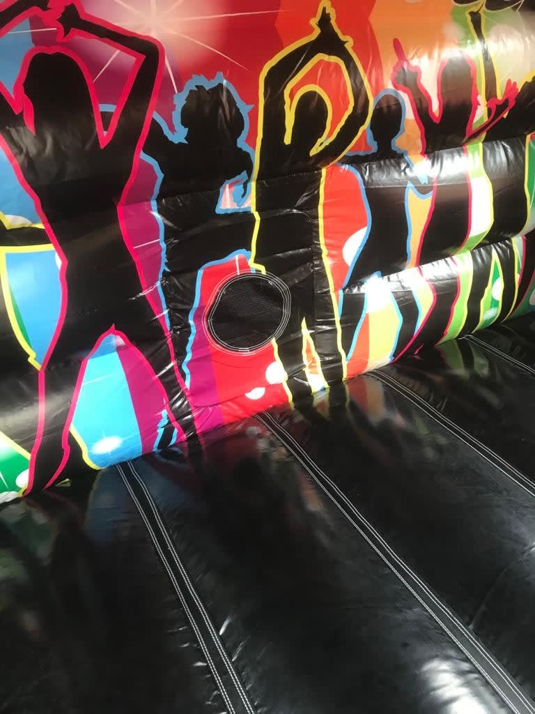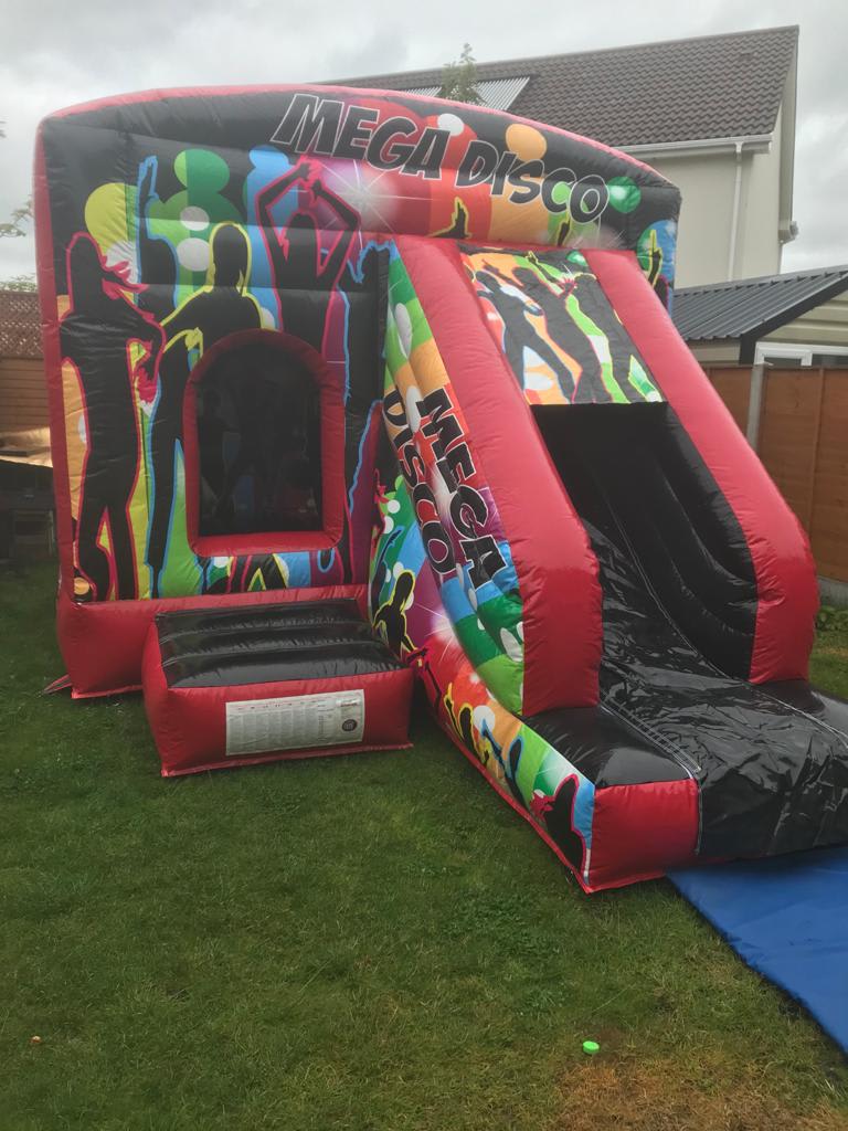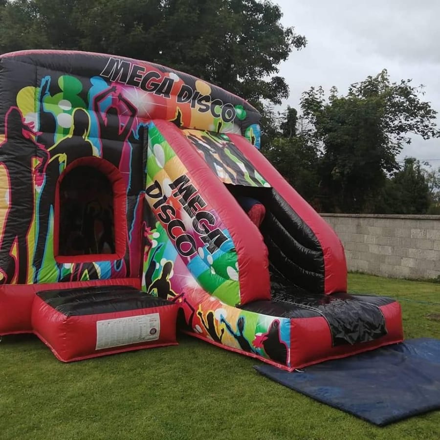 Why not have all 3 in 1 with this Mega Disco themed combi castle and slide. Included is a speaker which connects to bluetooth for music to keep all the little ones entertained for hours.