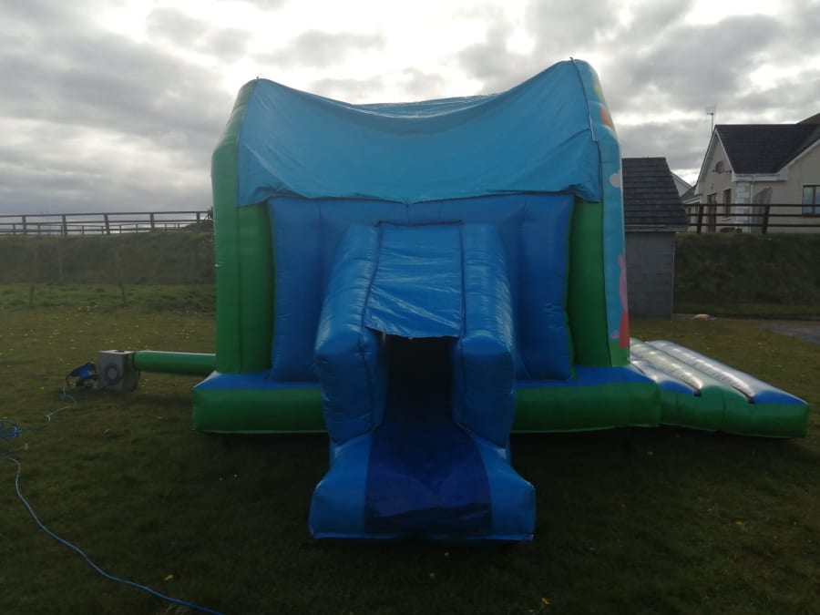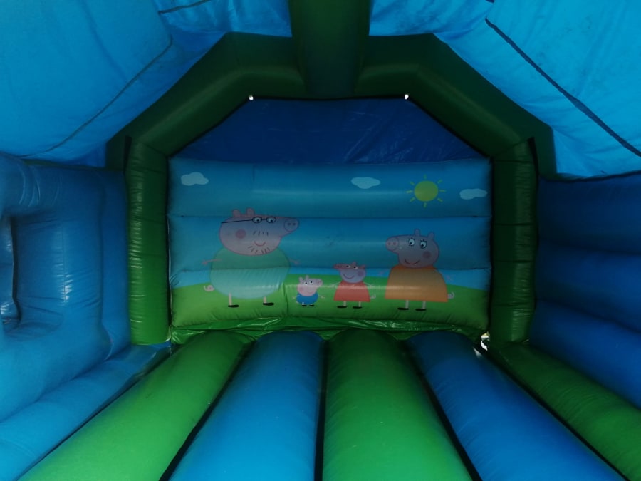 This Peppa Pig themed castle is both a bouncy castle and an inflatable slide. Twice the fun for everyone and the making of a child's party.