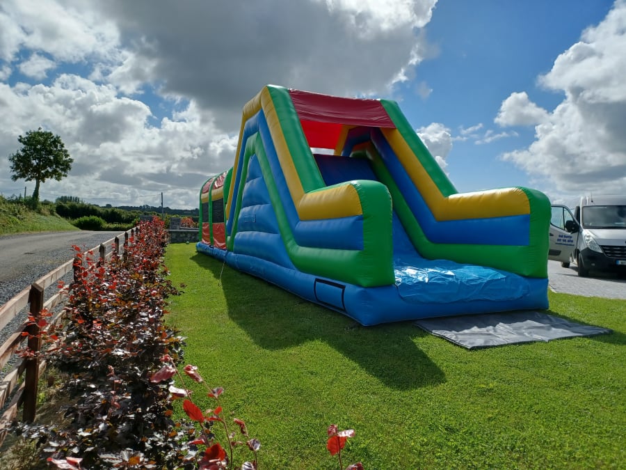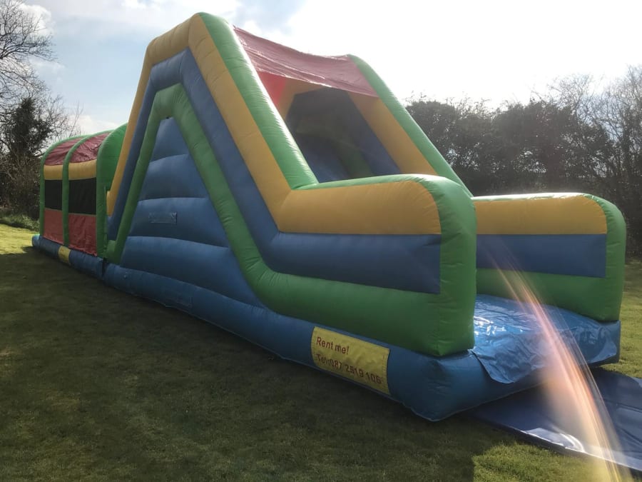 50ft in length it's hugely popular with boys and girls. Perfect for big gardens. Kids will spend hours manoeuvring through the obstacles and down the huge 10ft slide!!