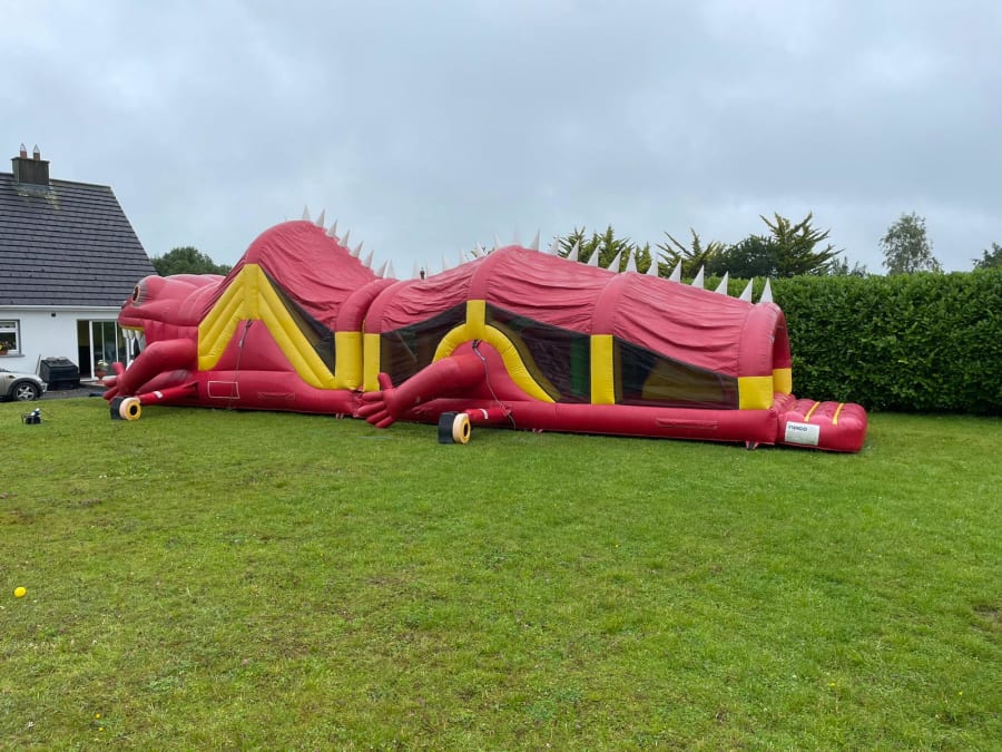 This Lizard Obstacle Course never disappoints! The obstacle course consists of a bounce area with many obstacles with both a medium and giant slide inside! Complete with a waterproof cover to ensure nothing gets in the way of fun. This obstacle course is extremely popular with boys and girls of all ages and for birthday parties, christenings, holy communions, weddings, confirmations, corporate events, sports days and school fun days!